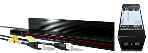 各エレベーター向けシュー一体型2in1製品をご用意しており、サイドオープン、センターオープンドア用にセットでご提供しておりますので設置が容易です。送信器、受信器と共に電源ユニット及び4mケーブルが付属しております。